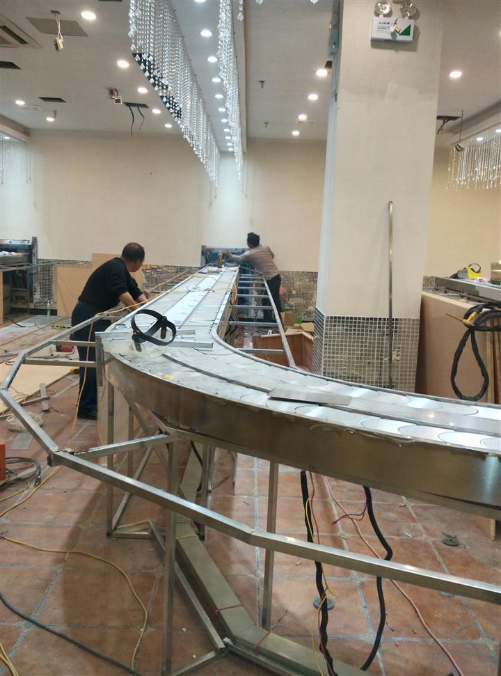 在旋轉(zhuǎn)火鍋輸送設(shè)備被運送到客戶的店鋪之后,公司的師傅會對其進行組裝和再次調(diào)試。